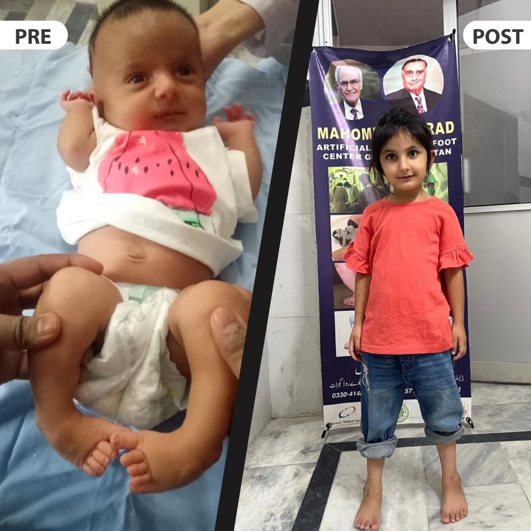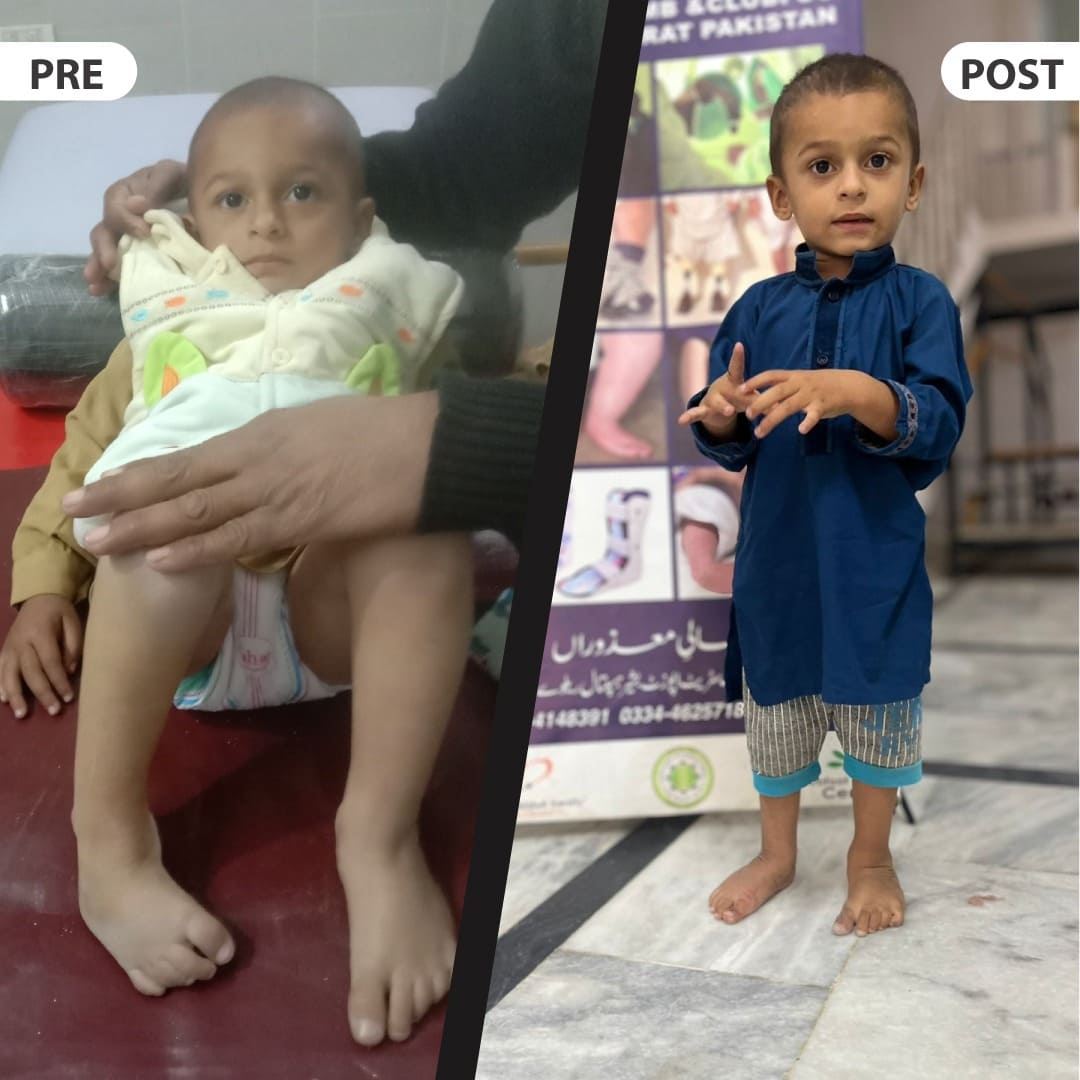 With timely medical care and continuous support, the child is now able to walk properly and live a better life.